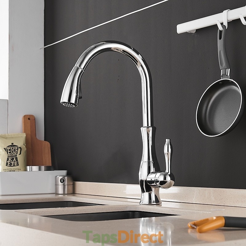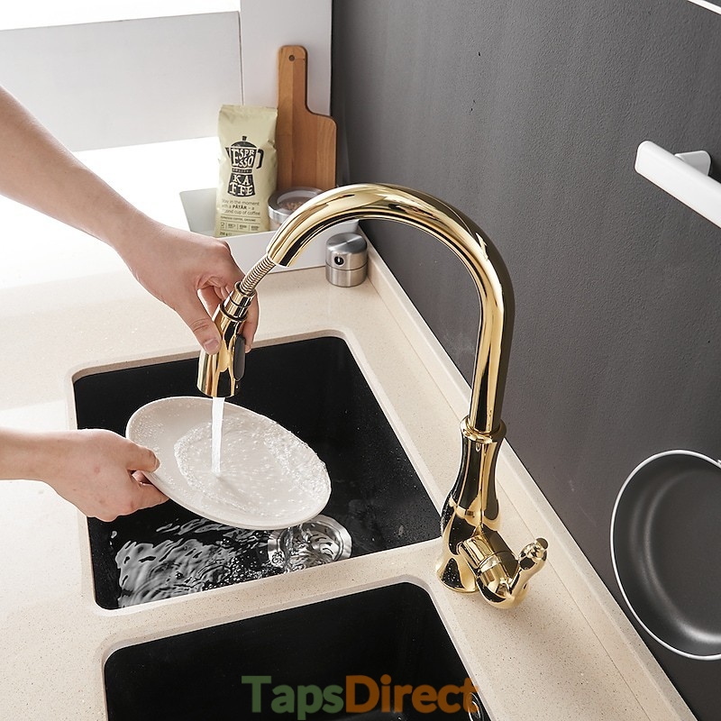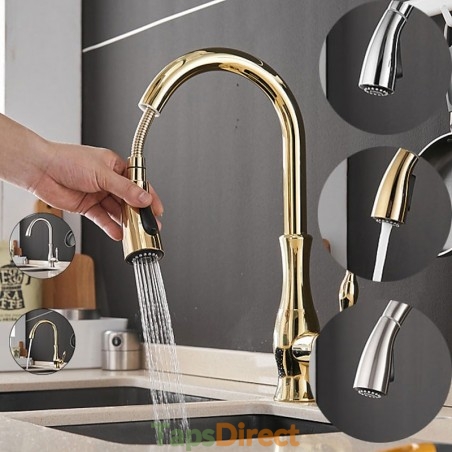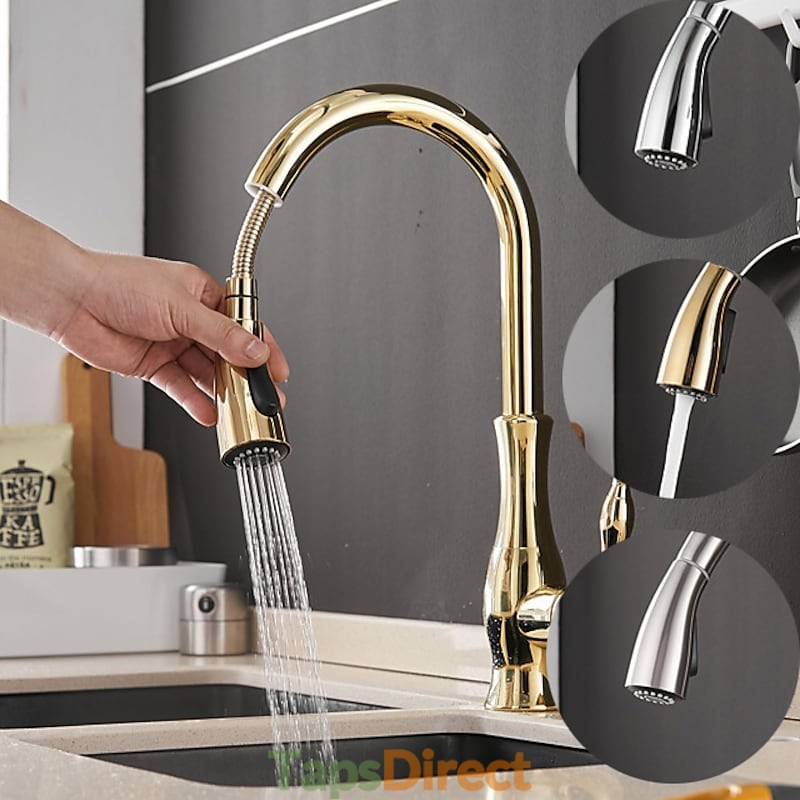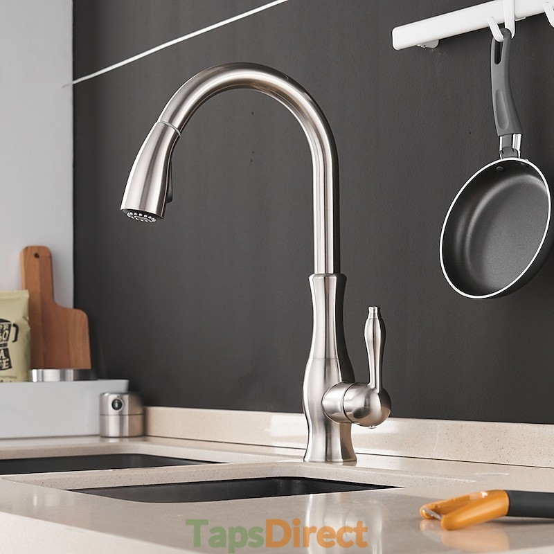 Sprayer Vessel Installation Nickel Brushed Electroplated Widespread Pull Out High Arc Brass Kitchen Tap