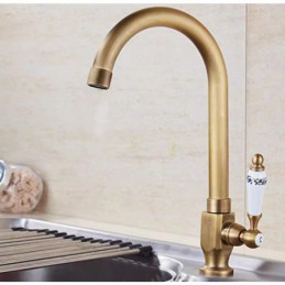 Type: Standard Spout, Style: Retro Vintage, Features: Rotatable, Faucet Type: Kitchen faucet, Installation Type: Centerset, Valve Type: Ceramic Valve, Finish: Antique Brass, Installation Holes and Handles: Single Handle One Hole,