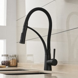 New Reference: 39369 Pull Out Single Lever Handle Brushed Solid Brass Tap with one Pull Down Sprayer Black Gold Tap for Kitchen Sink Tap Price €239.03 Add to basket More In stock