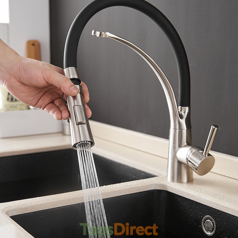 New Reference: 38800 Single Handle High Arc Stainless Steel Kitchen Sink Tap with Pull Out Sprayer Price €214.55 Add to basket More In stock