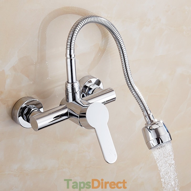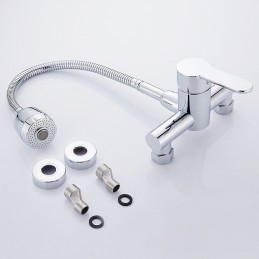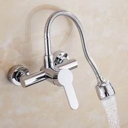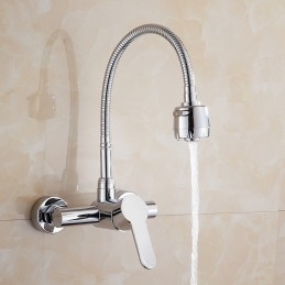 Type: Tall / High Arc, Standard Spout, Style: Modern, Features: Rotatable, Faucet Type: Kitchen faucet, Installation Type: Wall Mounted, Cold and Hot Switch: Yes, Valve Type: Ceramic Valve, Finish: Chrome, Installation Holes and Handles: Single Handle Two Holes,