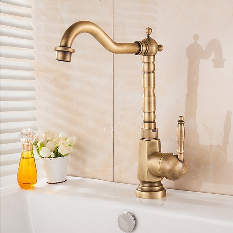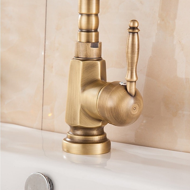 Type: Standard Spout, Style: Antique, Features: Rotatable, Faucet Type: Kitchen faucet, Installation Type: Vessel, Cold and Hot Switch: Yes, Valve Type: Ceramic Valve, Finish: Antique Brass, Suitable Rooms: Kitchen, Special selected products: COD,