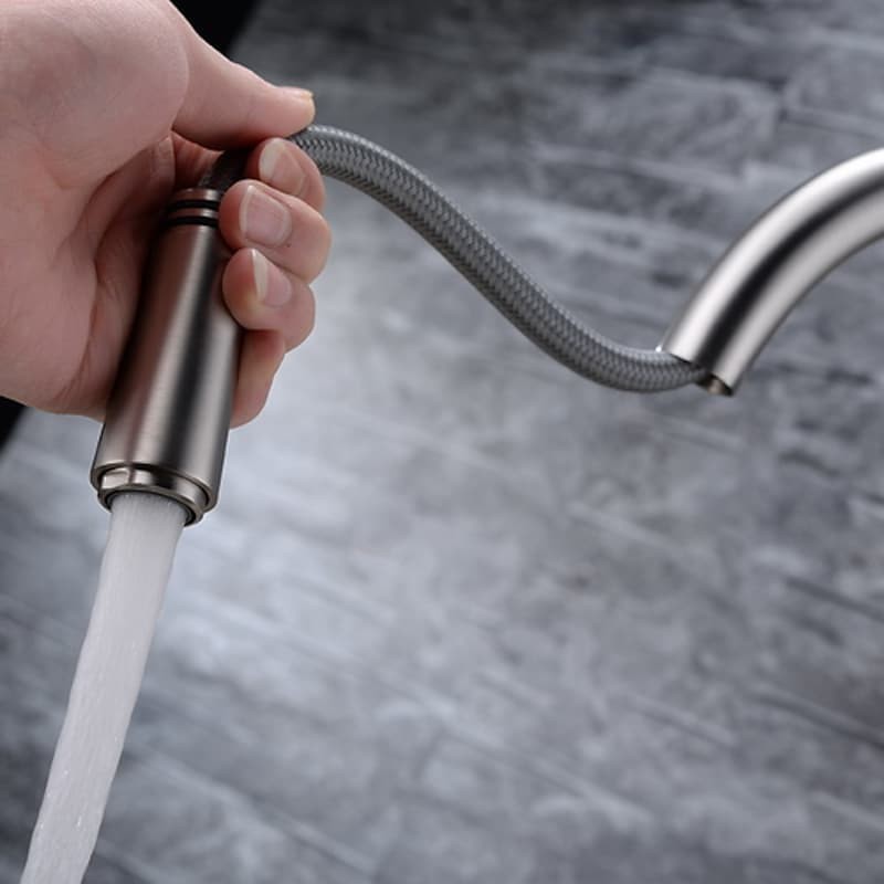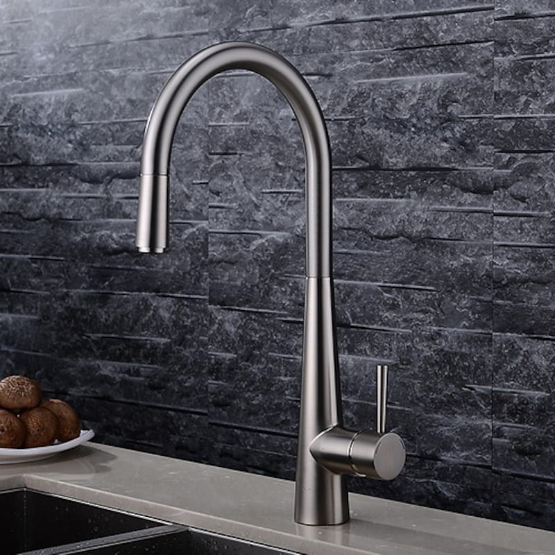 Type: Standard Spout, Tall / High Arc, Style: Contemporary, Features: Pullout Spray, Faucet Type: Kitchen faucet, Installation Type: Deck Mounted, Number Of Handles: Single Handle, Flow Rate (L/min): 1.8(6.18), Cold and Hot Switch: Yes, Valve Type: Ceramic Valve, Finish: Brushed, Suitable Rooms: Kitchen, Installation Holes and Handles: Single Handle One Hole, One Hole,