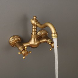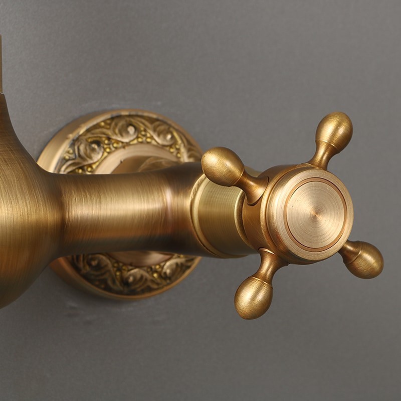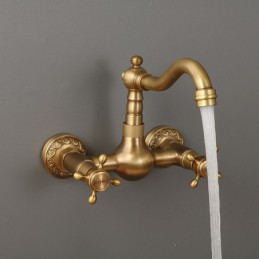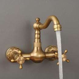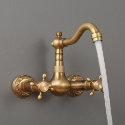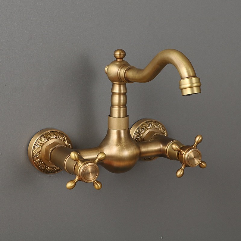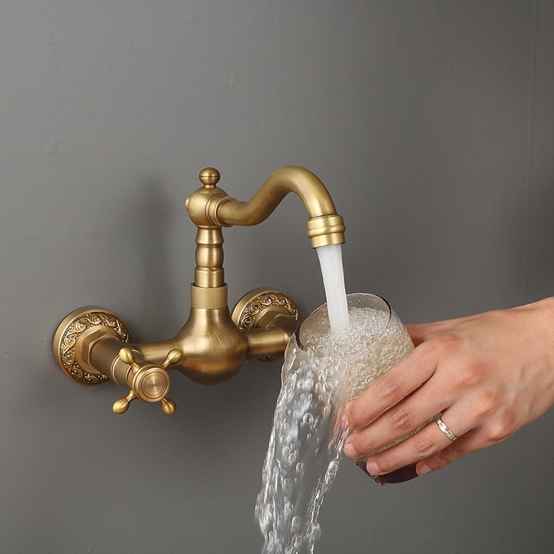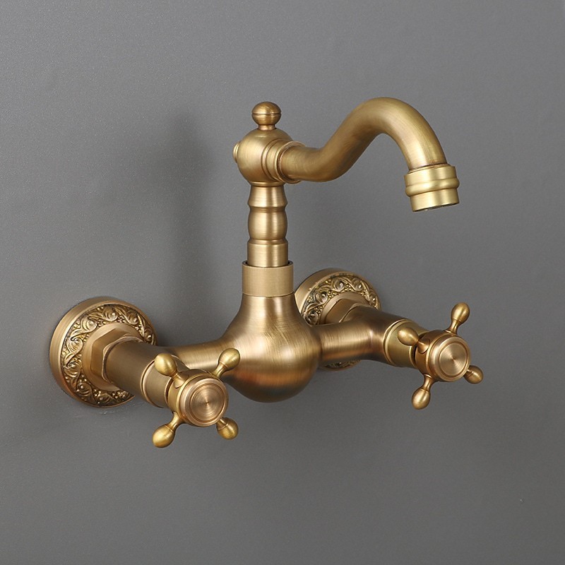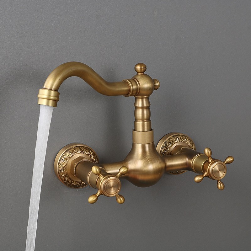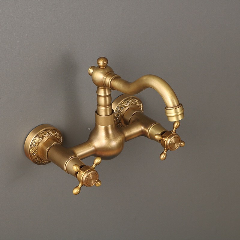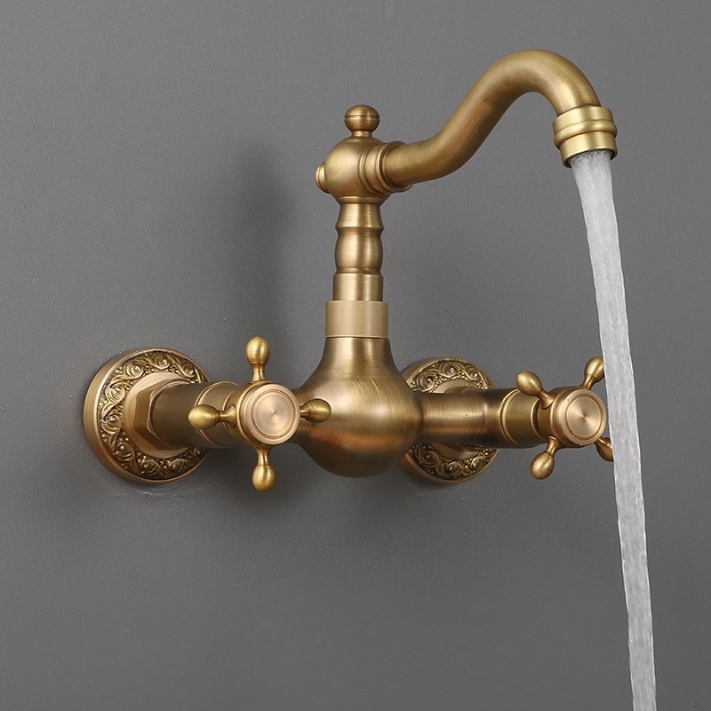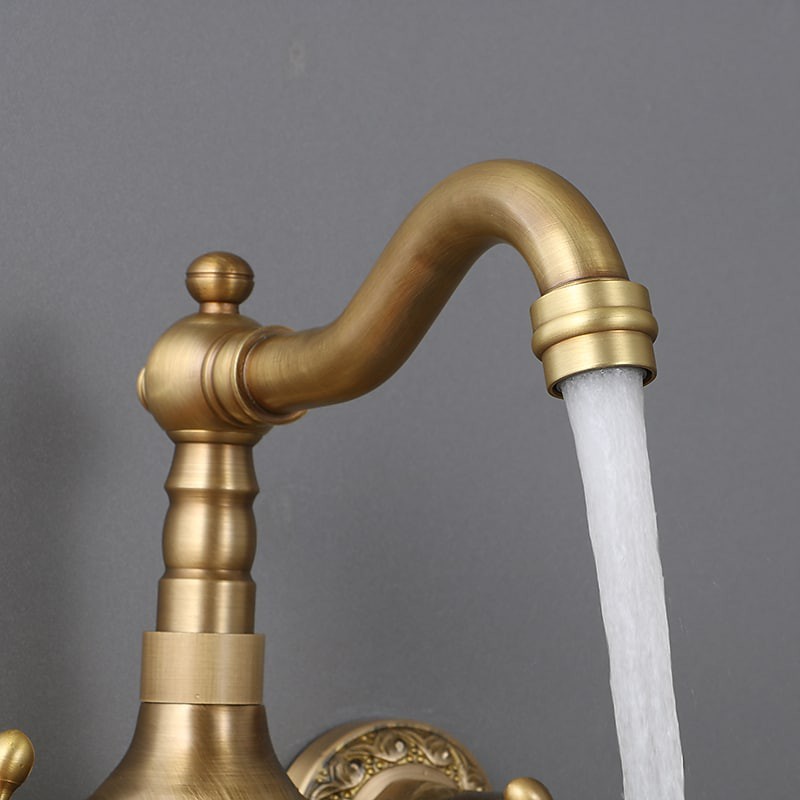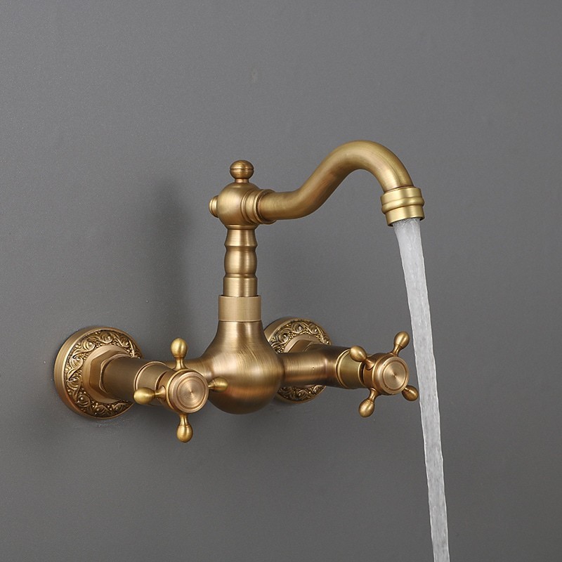 Type: Standard Spout, Style: Traditional, Faucet Type: Kitchen faucet, Installation Type: Wall Mounted, Number Of Handles: Two Handles, Flow Rate (L/min): #(1.8 GPM (6.81 L/min)), Cold and Hot Switch: Yes, Valve Type: Ceramic Valve, Finish: Antique Brass, Suitable Rooms: Kitchen, Installation Holes and Handles: Two Handles Two Holes, Two Holes,