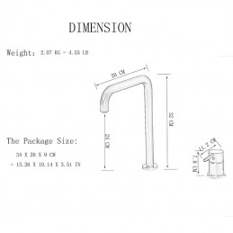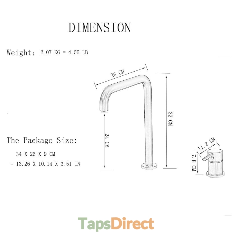 Spout Height (cm): 24, Overall Height (cm): 32, Spout Length (cm): 26, Faucet center(Inches): 0-1, Installation Hole Diameter (cm): 3.5,
