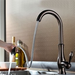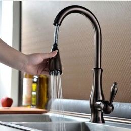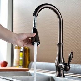 Type: Pull-out / Pull-down, Tall / High Arc, Style: Traditional, Features: Pullout Spray, Faucet Type: Kitchen faucet, Installation Type: Deck Mounted, Number Of Handles: Single Handle, Flow Rate (L/min): 2(7.5), Cold and Hot Switch: Yes, Valve Type: Ceramic Valve, Finish: Oil-rubbed Bronze, Installation Holes and Handles: Single Handle One Hole, One Hole,