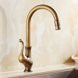 Type: Standard Spout, Style: Antique, Contemporary, Features: FaucetSet, Rotatable, Faucet Type: Kitchen faucet, Installation Type: Centerset, Cold and Hot Switch: Yes, Valve Type: Ceramic Valve, Finish: Antique Brass, Installation Holes and Handles: Single Handle One Hole,