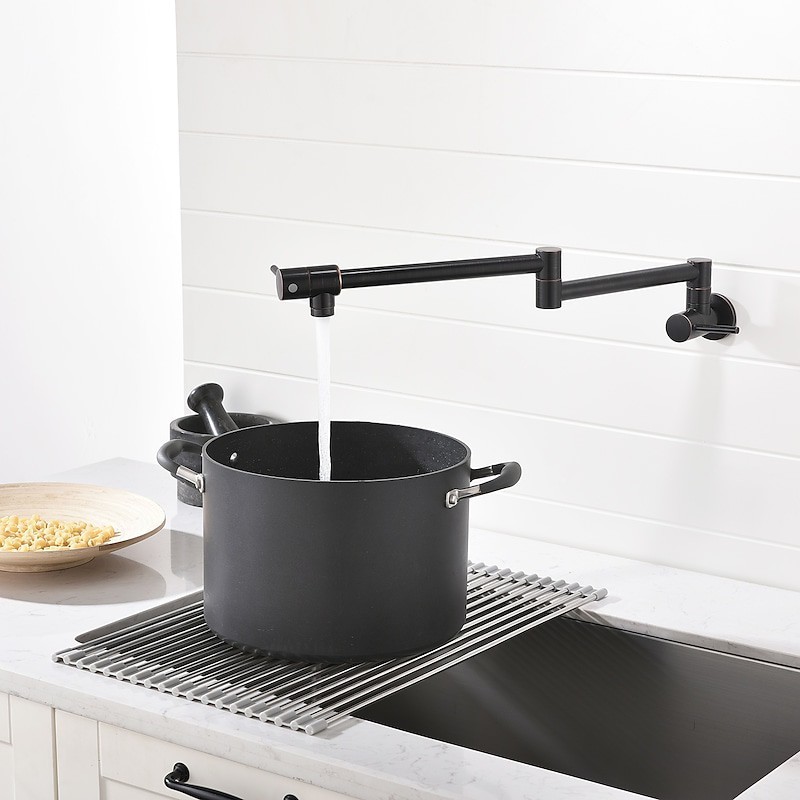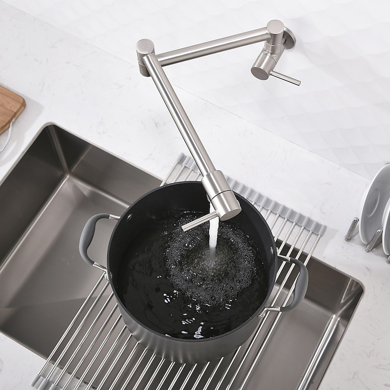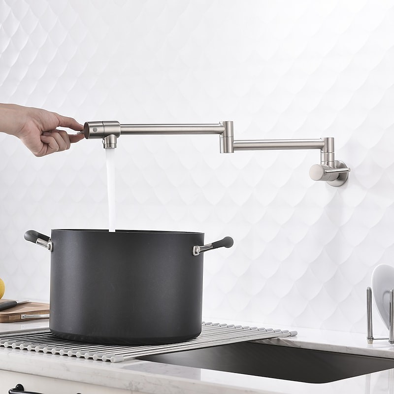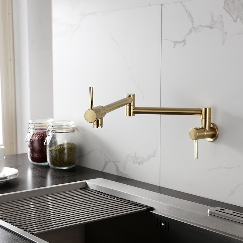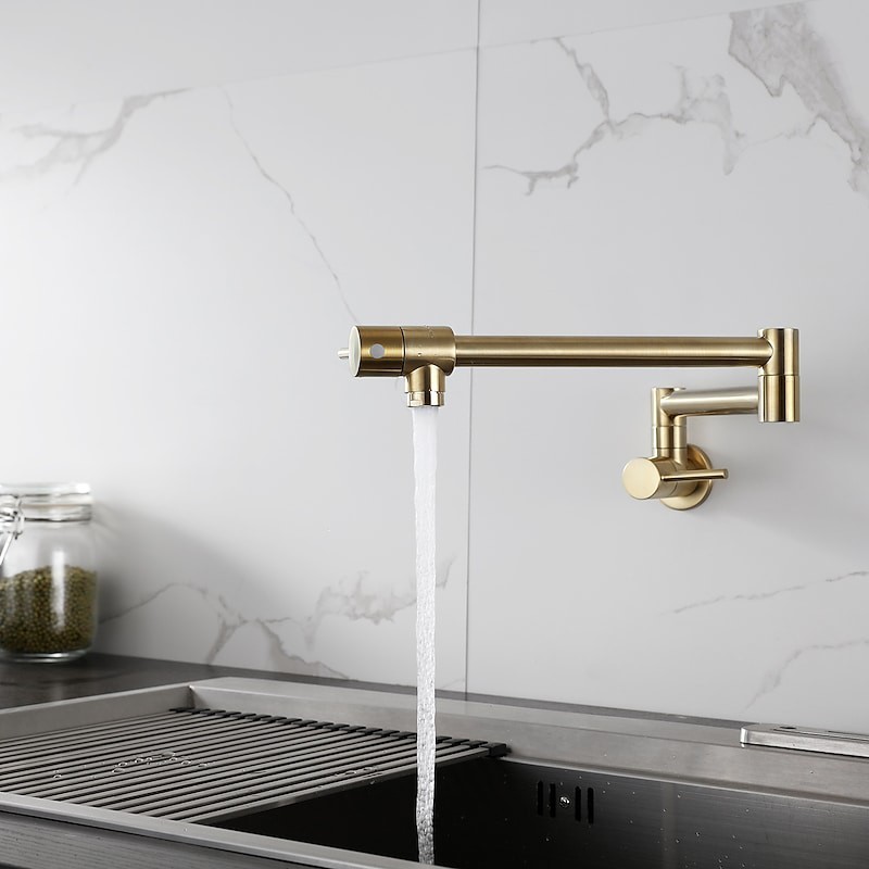 Type: Pot Filler, Style: Contemporary, Features: Foldable, Faucet Type: Kitchen faucet, Installation Type: Wall Mounted, Certification: WATER MARK, UPC, CUPC, Flow Rate (L/min): 6, Cold and Hot Switch: No, Valve Type: Ceramic Valve, Finish: Brushed Gold, Painted Finishes, Electroplated, Chrome, Nickel Brushed, Oil-rubbed Bronze, Installation Holes and Handles: Two Handles One Hole, Water Pressure (Mpa): 6,