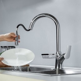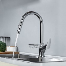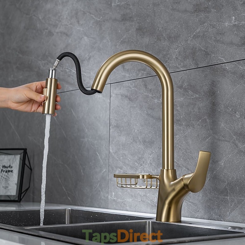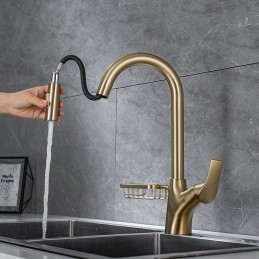 Type: Pull-out / Pull-down, Tall / High Arc, Standard Spout, Style: Modern Contemporary, Features: Rotatable, Multi-function, Pull out, Faucet Type: Kitchen faucet, Installation Type: Centerset, Cold and Hot Switch: Yes, Valve Type: Ceramic Valve, Finish: Brushed Gold, Painted Finishes, Electroplated, Chrome, Installation Holes and Handles: Single Handle One Hole,