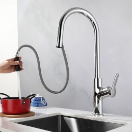 Type: Standard Spout, Pull-out / Pull-down, Tall / High Arc, Style: Modern Contemporary, Features: Rotatable, Multi-function, Pull out, Faucet Type: Kitchen faucet, Installation Type: Centerset, Cold and Hot Switch: Yes, Finish: Painted Finishes, Electroplated, Installation Holes and Handles: Single Handle One Hole,