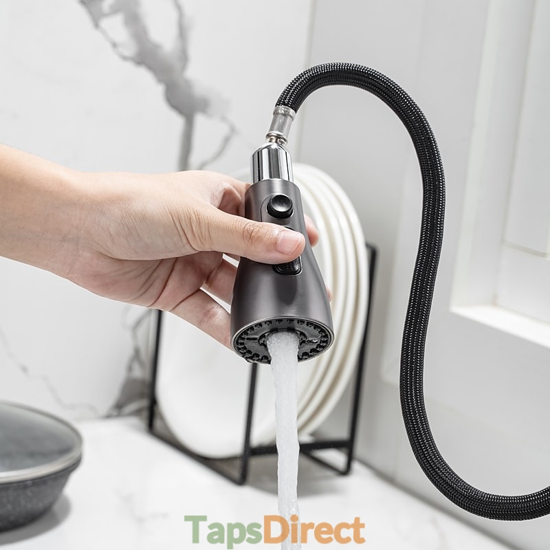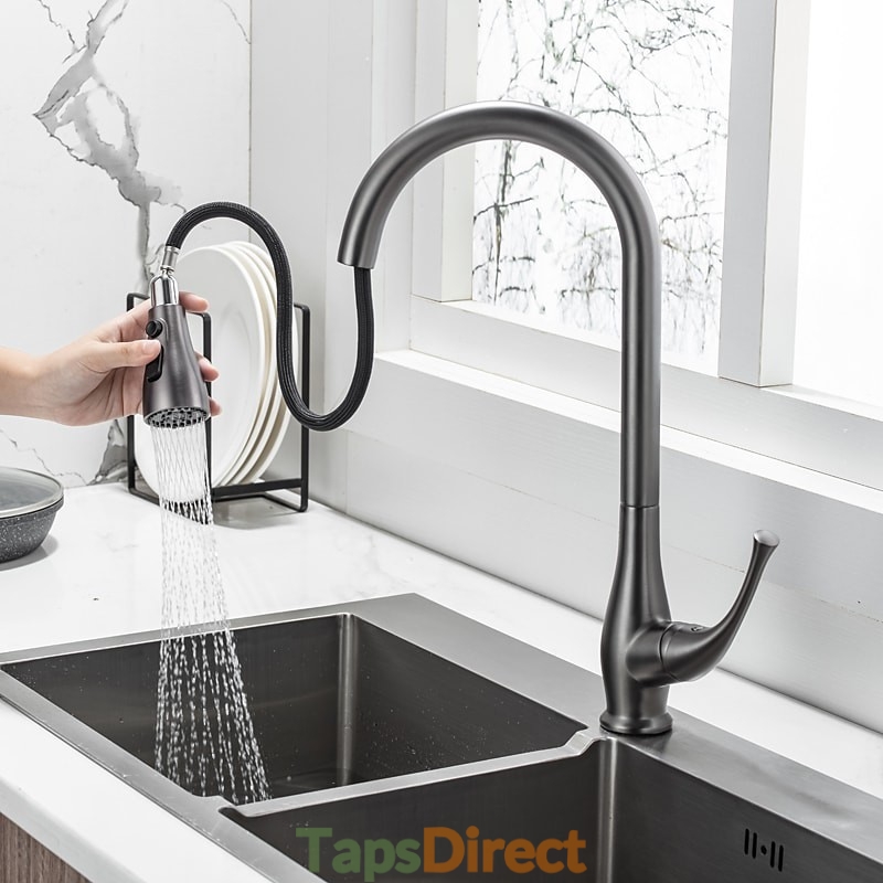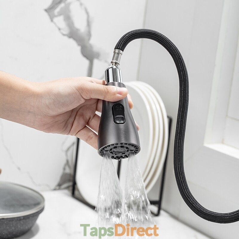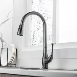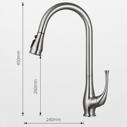 Type: Standard Spout, Pull-out / Pull-down, Tall / High Arc, Features: Pull out, Rotatable, Multi-function, Faucet Type: Kitchen faucet, Installation Type: Centerset, Cold and Hot Switch: Yes, Valve Type: Ceramic Valve, Finish: Electroplated, Nickel Brushed, Installation Holes and Handles: Single Handle One Hole,