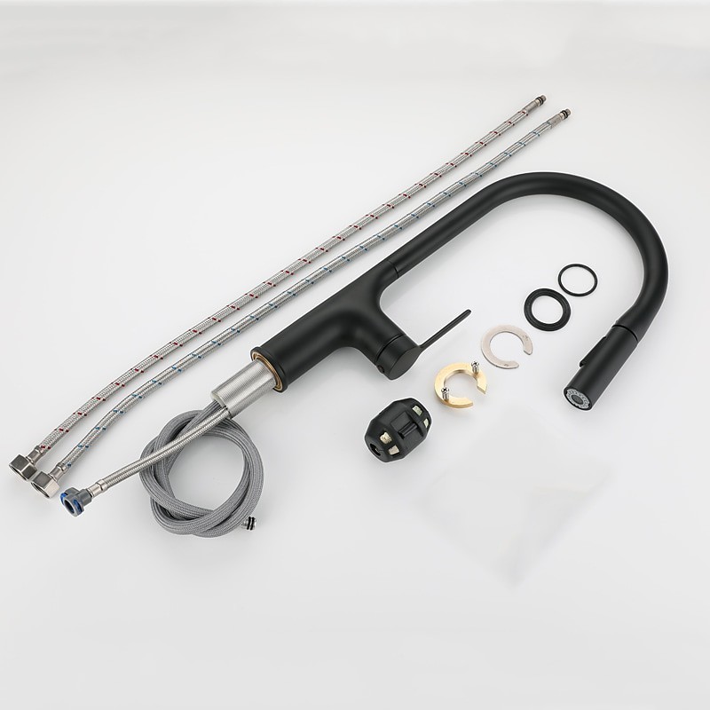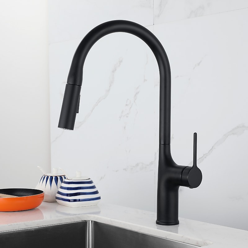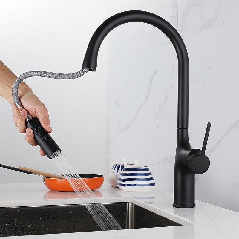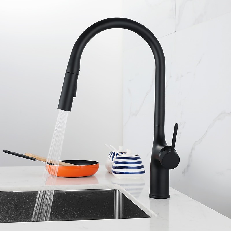 Type: Standard Spout, Pull-out / Pull-down, Tall / High Arc, Style: Modern Contemporary, Features: Rotatable, Multi-function, Pull out, Faucet Type: Kitchen faucet, Installation Type: Centerset, Cold and Hot Switch: Yes, Valve Type: Ceramic Valve, Finish: Painted Finishes, Electroplated, Installation Holes and Handles: Single Handle One Hole,