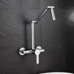 Type: Pull-out / Pull-down, Pot Filler, Style: Contemporary, Features: Rotatable, Foldable, Faucet Type: Kitchen faucet, Installation Type: Wall Mounted, Cold and Hot Switch: Yes, Valve Type: Ceramic Valve, Finish: Painted Finishes, Electroplated, Installation Holes and Handles: Single Handle Two Holes,