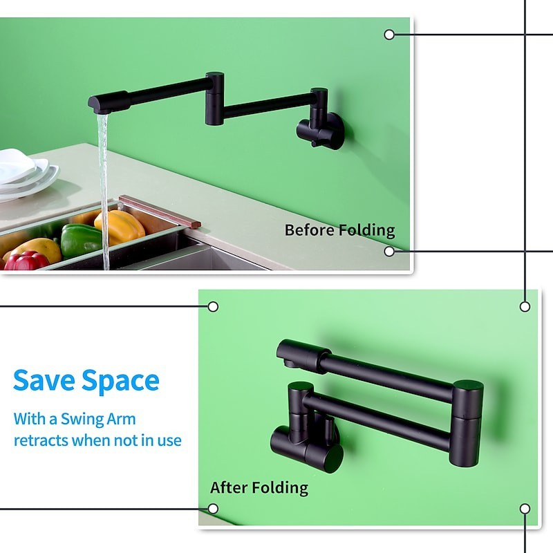Type: Pot Filler, Style: Contemporary, Features: Widespread, Faucet Type: Kitchen faucet, Installation Type: Wall Mounted, Cold and Hot Switch: No, Valve Type: Ceramic Valve, Finish: Painted Finishes, Installation Holes and Handles: Single Handle One Hole, Special selected products: Clearance,