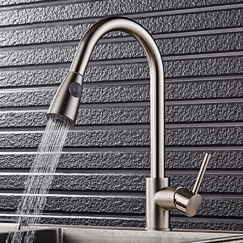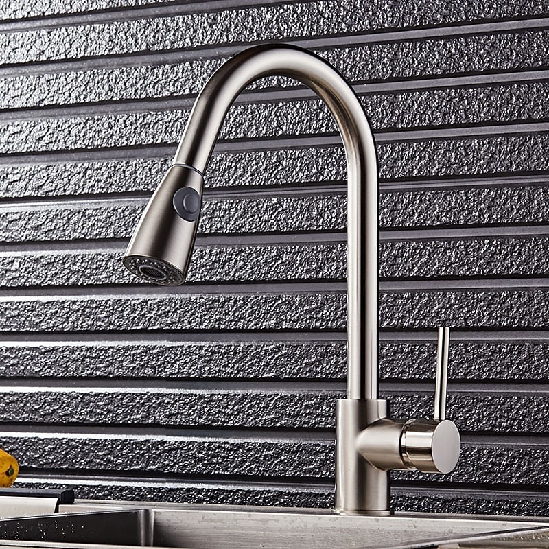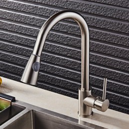 Type: Tall / High Arc, Pull-out / Pull-down, Style: Fashion, Modern Contemporary, Features: Pull out, Widespread, Rotatable, Faucet Type: Kitchen faucet, Installation Type: Vessel, Cold and Hot Switch: Yes, Valve Type: Ceramic Valve, Finish: Nickel Brushed, Suitable Rooms: Kitchen, Special selected products: COD,