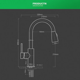 Spout Height (cm): 20, Overall Height (cm): 40, Spout Length (cm): 23, Faucet center(Inches): 0-1,