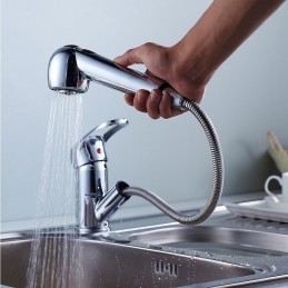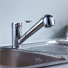 Type: Pull-out / Pull-down, Style: Minimalist, Features: Pull out, Multi-function, Faucet Type: Kitchen faucet, Installation Type: Centerset, Flow Rate (L/min): 1.5GPM(5.7L / min) max), Cold and Hot Switch: Yes, Valve Type: Ceramic Valve, Finish: Chrome, Installation Holes and Handles: Single Handle One Hole,