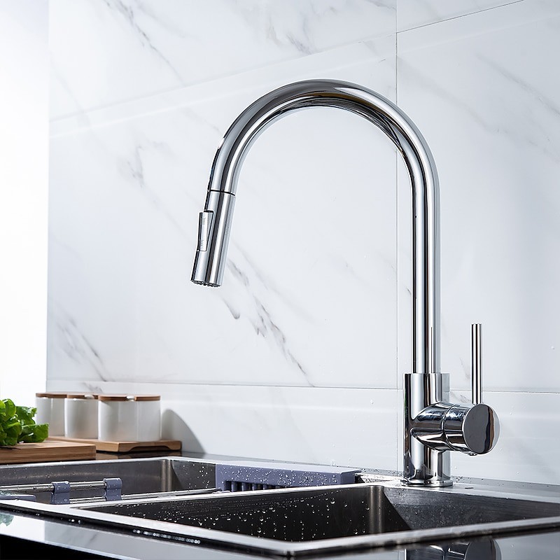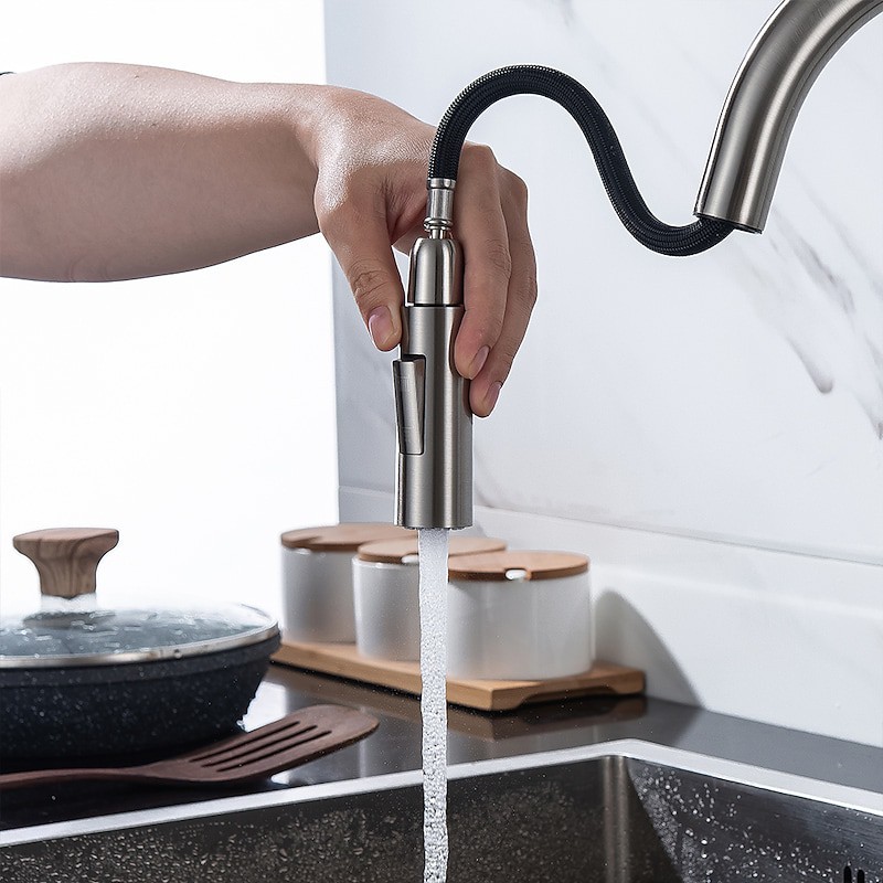 Pull out Spray Single Handle 2 modes Brass Kitchen Tap