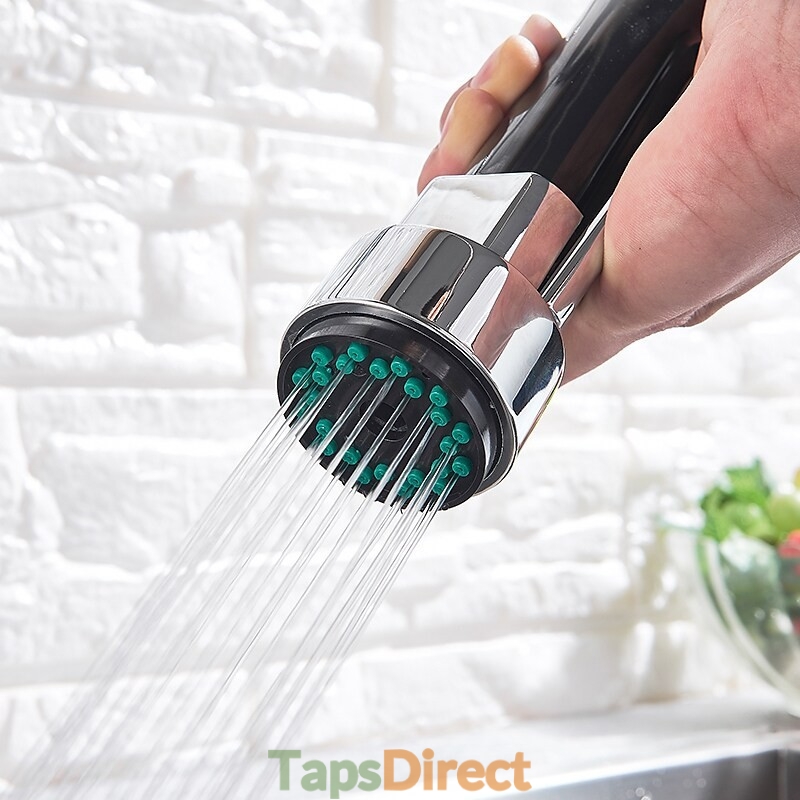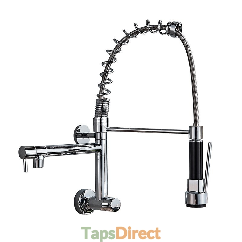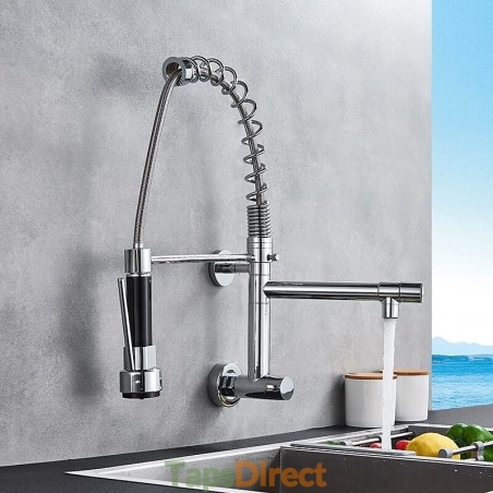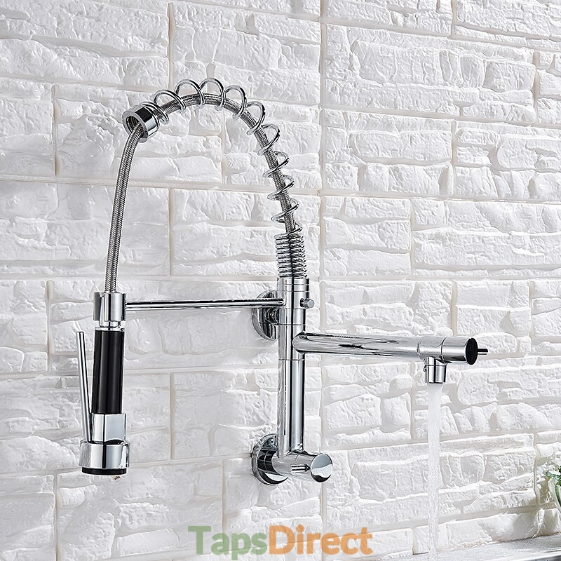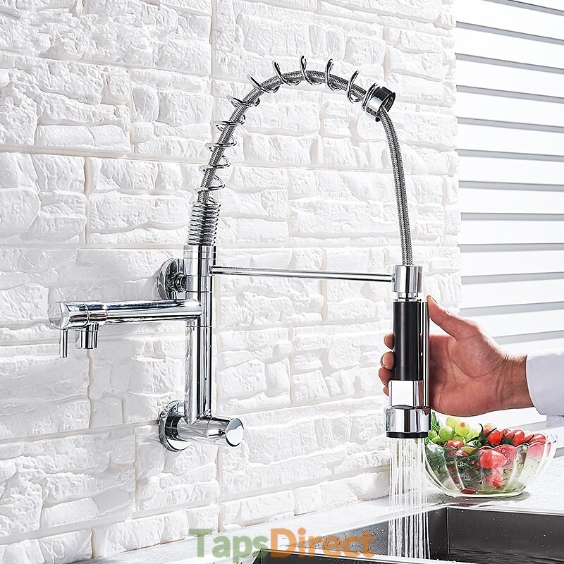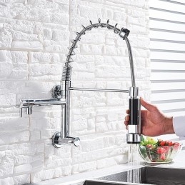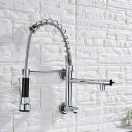 Type: Pull-out / Pull-down, Style: Contemporary, Features: Pullout Spray, Faucet Type: Kitchen faucet, Installation Type: Wall Mounted, Cold and Hot Switch: No, Valve Type: Ceramic Valve, Finish: Chrome, Installation Holes and Handles: Single Handle Two Holes,