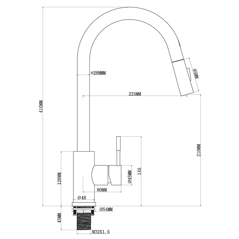 Spout Height (cm): 41, Overall Height (cm): 41, Installation Hole Diameter (cm): 3.5,