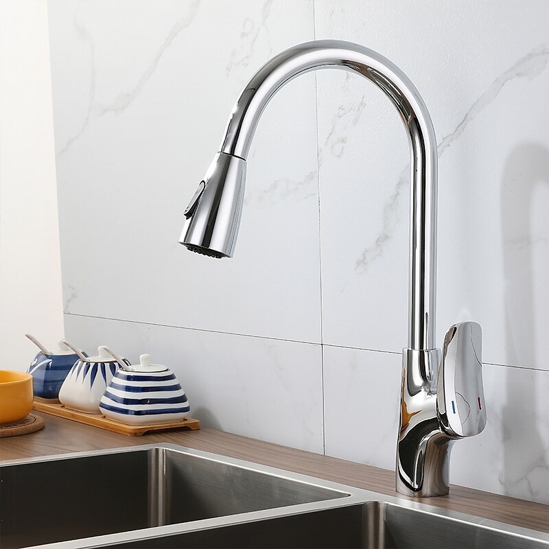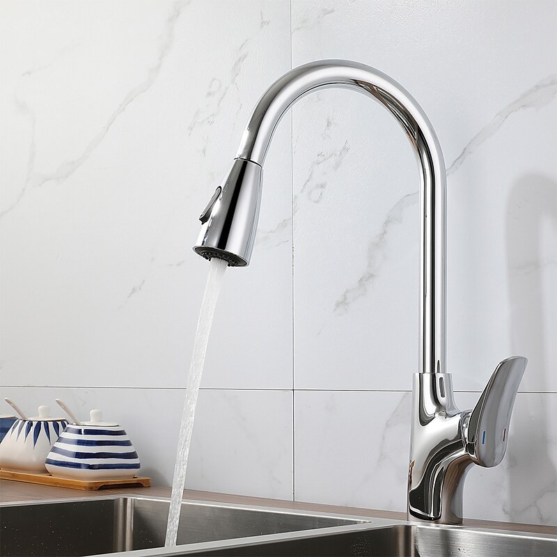 Type: Pull-out / Pull-down, Style: Modern Contemporary, Features: Rotatable, Pull out, Faucet Type: Kitchen faucet, Installation Type: Centerset, Cold and Hot Switch: Yes, Valve Type: Ceramic Valve, Finish: Electroplated, Installation Holes and Handles: Single Handle One Hole,