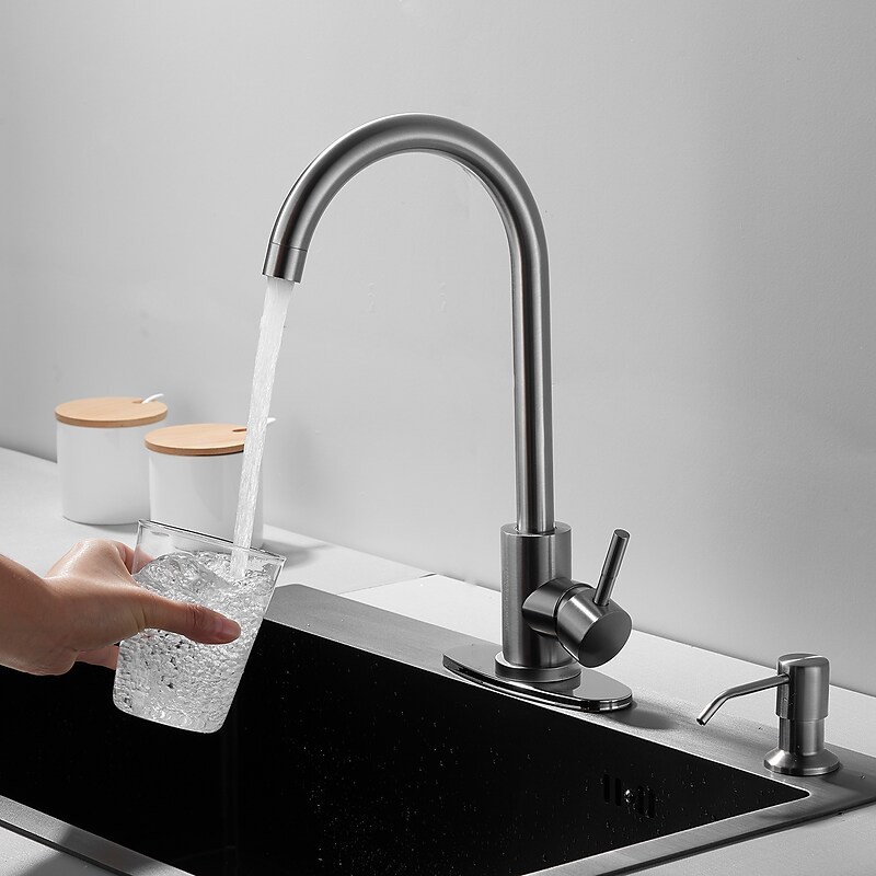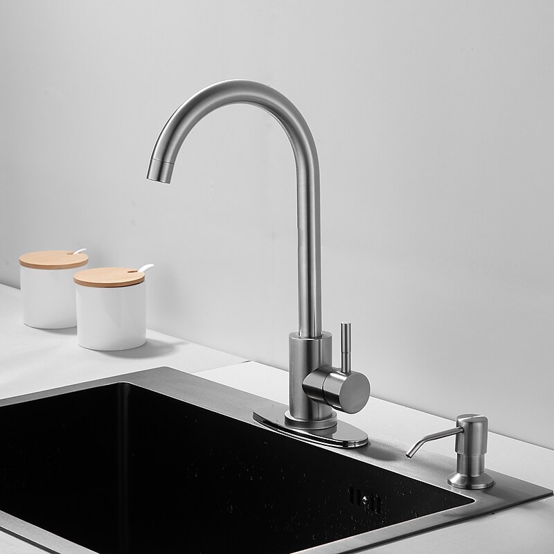 Type: Bar / Prep, Tall / High Arc, Style: Contemporary, Antique, Features: FaucetSet, Rotatable, Multi-function, Faucet Type: Kitchen faucet, Installation Type: Deck Mounted, Cold and Hot Switch: Yes, Valve Type: Ceramic Valve, Finish: Nickel Brushed, Installation Holes and Handles: Single Handle One Hole,