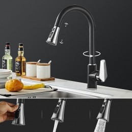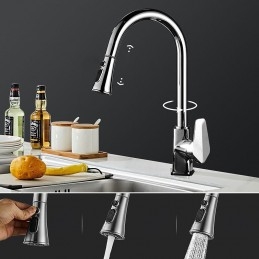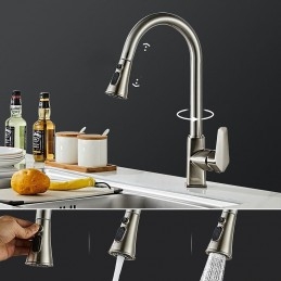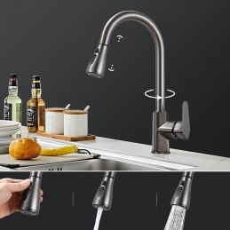 Type: Pull-out / Pull-down, Tall / High Arc, Standard Spout, Style: Minimalist, Modern Contemporary, Features: Rotatable, Multi-function, Pull out, Faucet Type: Kitchen faucet, Installation Type: Centerset, Cold and Hot Switch: Yes, Valve Type: Ceramic Valve, Finish: Painted Finishes, Electroplated, Installation Holes and Handles: Single Handle One Hole, Water Pressure (Mpa): 0.2-1,