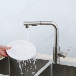 Type: Standard Spout, Pull-out / Pull-down, Style: Modern Contemporary, Minimalist, Features: Rotatable, Multi-function, Pull out, Faucet Type: Kitchen faucet, Installation Type: Centerset, Cold and Hot Switch: Yes, Valve Type: Ceramic Valve, Finish: Nickel Brushed, Installation Holes and Handles: Single Handle One Hole, Water Pressure (Mpa): 0.3-1,