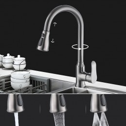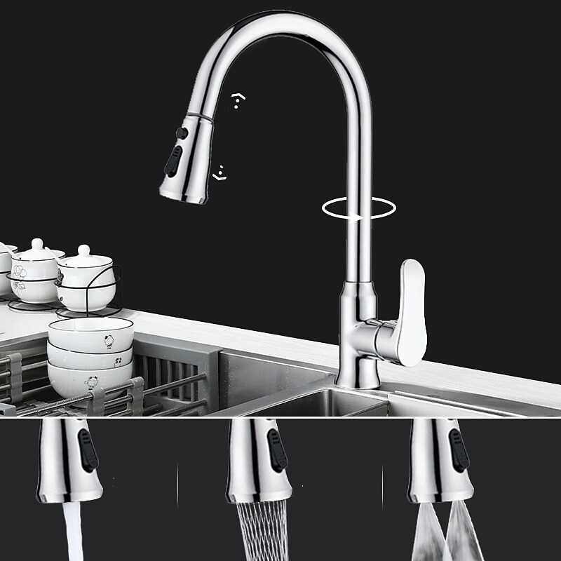 Type: Standard Spout, Pull-out / Pull-down, Tall / High Arc, Style: Minimalist, Modern Contemporary, Features: Rotatable, Multi-function, Pull out, Faucet Type: Kitchen faucet, Installation Type: Centerset, Cold and Hot Switch: Yes, Valve Type: Ceramic Valve, Finish: Electroplated, Installation Holes and Handles: Single Handle One Hole, Water Pressure (Mpa): 0.3-1,