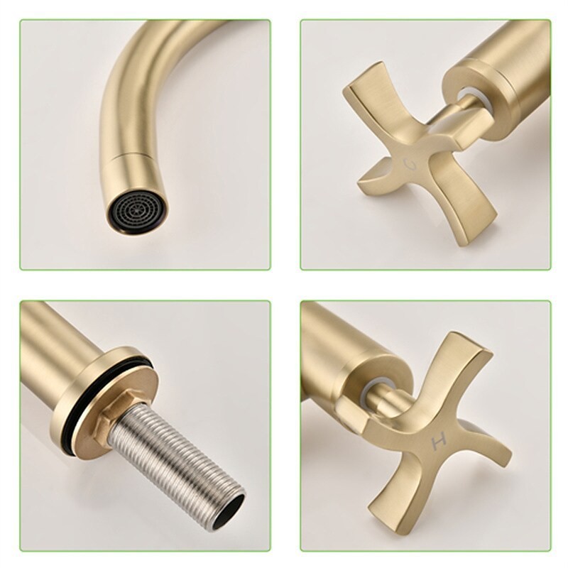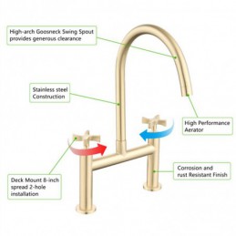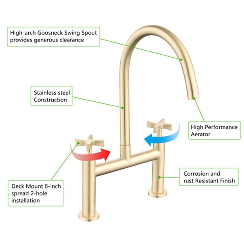 Style: Modern Contemporary, Features: FaucetSet, Faucet Type: Kitchen faucet, Cold and Hot Switch: Yes, Finish: Stainless Steel, Installation Holes and Handles: Two Handles Two Holes,