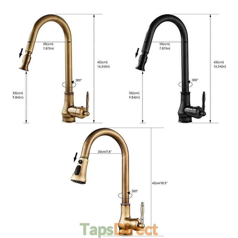 New Reference: 39384 Sprayer Pull out Pull down Antique Brass Black Antique Single Handle Kitchen Tap Price €171.35 Add to basket More In stock