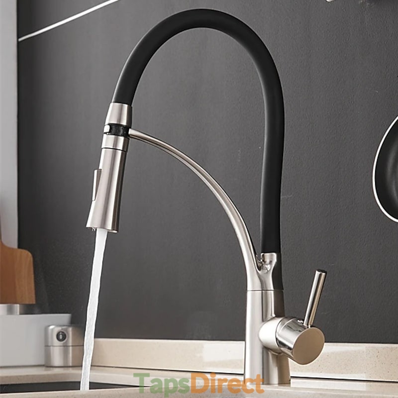 Type: Pull-out / Pull-down, Style: Contemporary, Features: FaucetSet, Pull out, Faucet Type: Kitchen faucet, Installation Type: Centerset, Valve Type: Ceramic Valve, Finish: Nickel Brushed, Installation Holes and Handles: Single Handle One Hole,