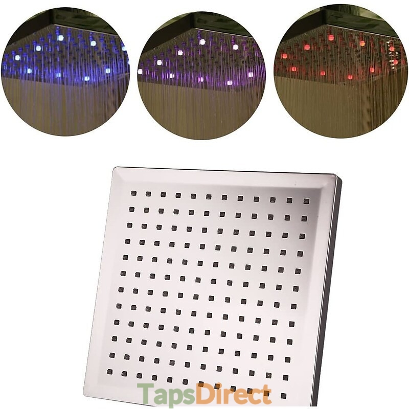LED Tricolor Luminous Color Top Spray Shower Head With Temperature 9 Inch Water Booster Top Spray (ABS Plating)