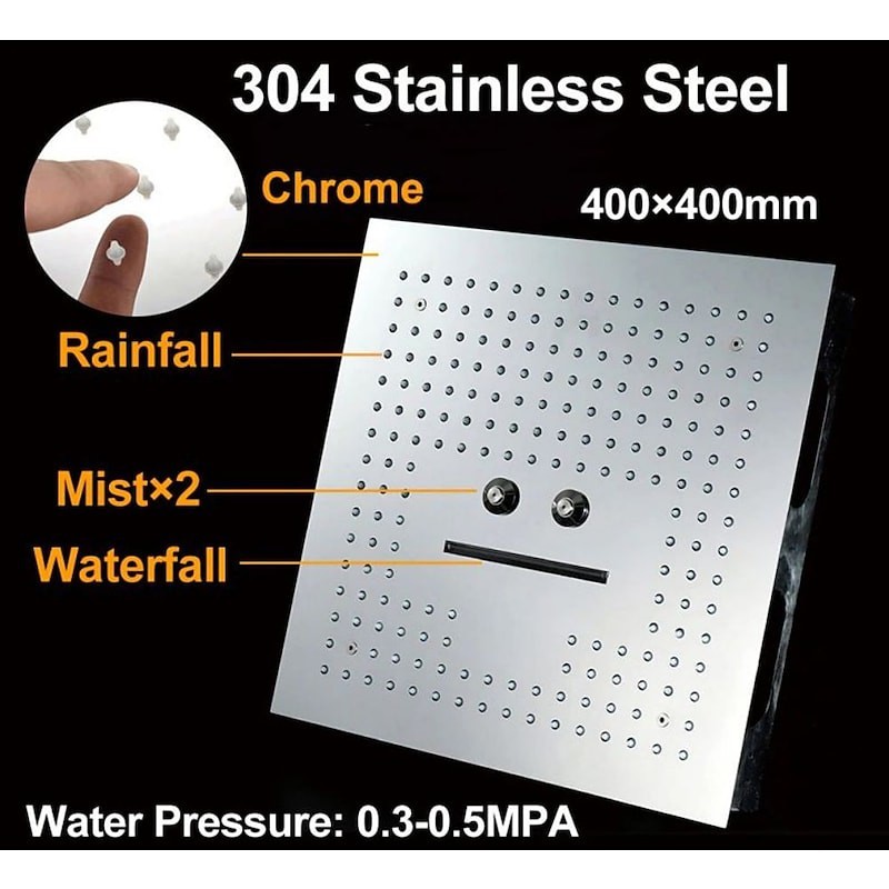 Material: Stainless steel, Type: Rain Shower, Style: Contemporary, Features: LED, Shower, Shower Width (cm): 40, Shower Length (cm): 40, Finish: Chrome,