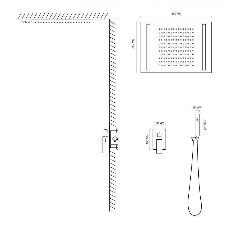 Rain Shower Included: Yes, Handshower Included: Yes, Bodysprays Included: No, Valve Included: Yes, Drain Included: No,