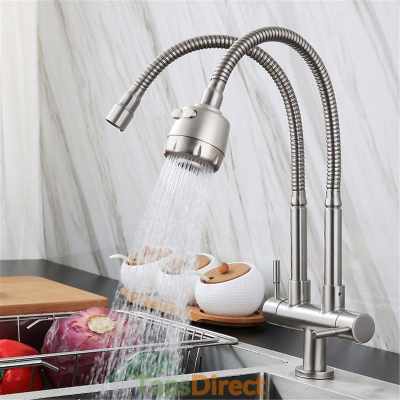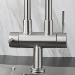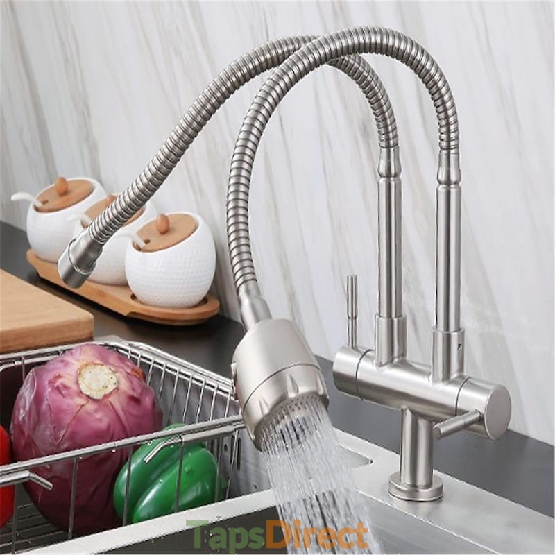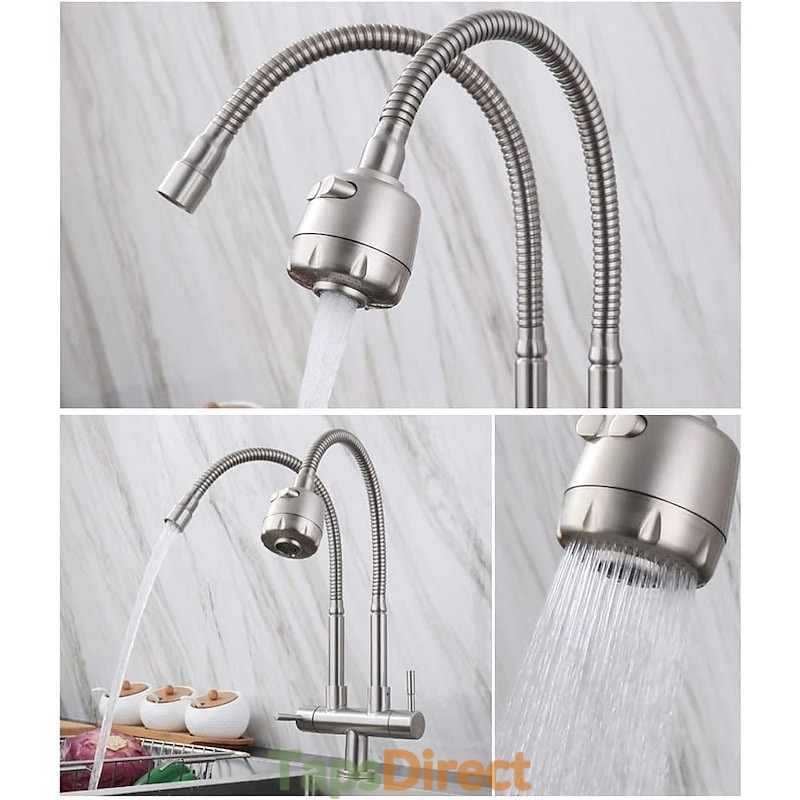 Type: Standard Spout, Style: Contemporary, Features: Rotatable, Faucet Type: Kitchen faucet, Installation Type: Centerset, Flow Rate (L/min): 0.2, Finish: Stainless Steel, Installation Holes and Handles: Two Handles One Hole, Water Pressure (Mpa): 0.02-0.7,
