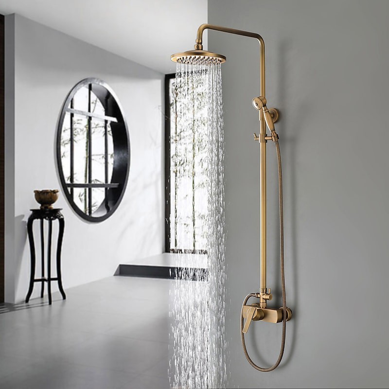Style: Traditional, Function: Shower Faucets, Handle Material: Brass, Shower Head: Rainfall, Number Of Handles: Single Handle, Hand Shower Material: Brass, Spout Height (cm): 1360 mm (53.54"), Valve Type: Ceramic Valve, Faucet center(Inches): 18-21, Handshower Material: Brass, Faucet Body Material: Brass, Faucet Spout Material: Brass, Finish: Brushed, Antique, Net Weight (kg): 5.74, Shipping Weight (kg): 4.77, Special selected products: hot, Listing Date: 06/06/2013,