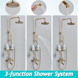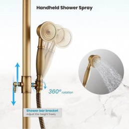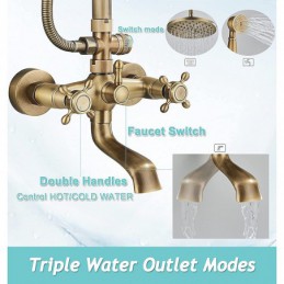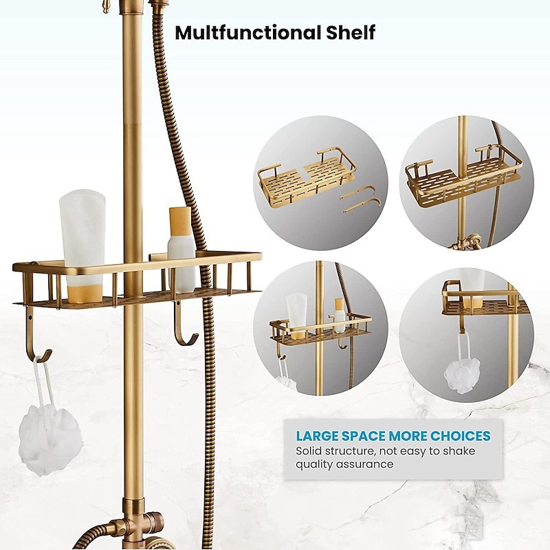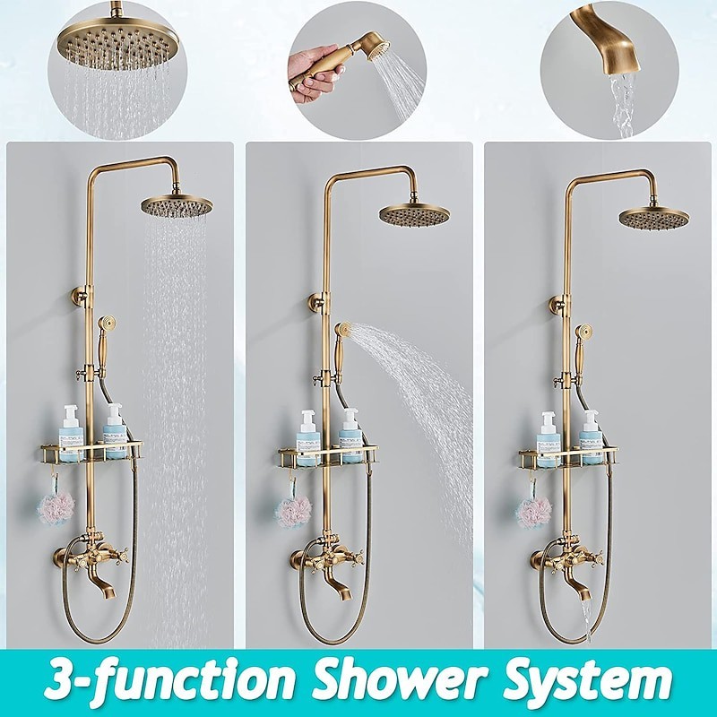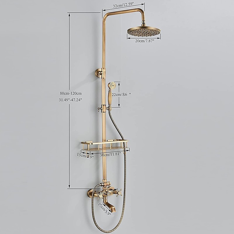 Style: Antique, Faucet Type: Shower System, Number Of Handles: Two Handles, Flow Rate (L/min): 1.8 GPM (6.81 L/min), Cold and Hot Switch: Yes, Valve Type: Ceramic Valve, Finish: Antique Brass, Installation Holes and Handles: Two Handles Five Holes, Special selected products: COD, Clearance,