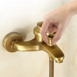 Style: Vintage Style, Country, Features: pullout, Dual-Head, Handshower Included, Faucet Type: Shower Faucet, Installation Type: Mount Outside, Number Of Handles: Single Handle, Cold and Hot Switch: Yes, Valve Type: Ceramic Valve, Finish: Antique Brass, Special selected products: COD,