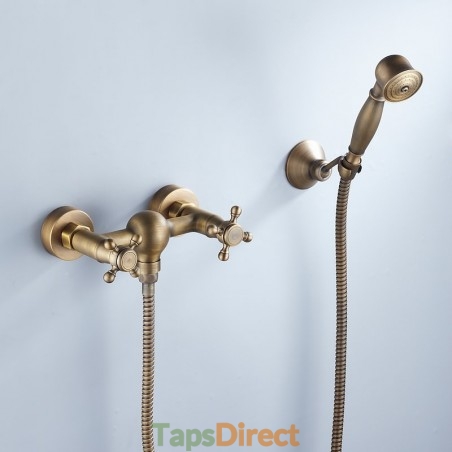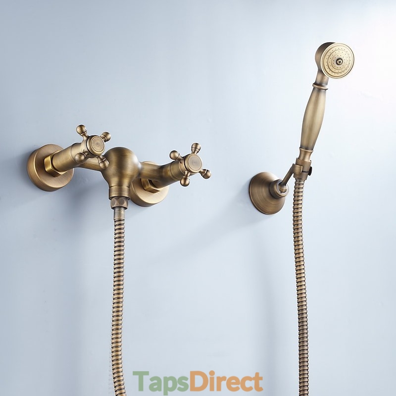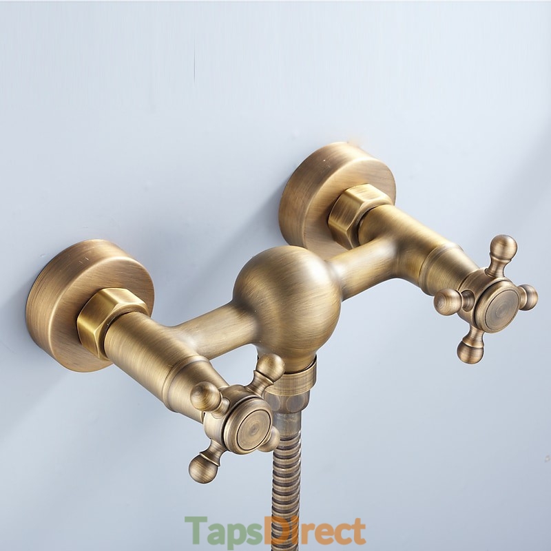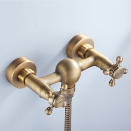 Faucet Type: Shower Faucet, Valve Type: Ceramic Valve, Finish: Antique Brass, Installation Holes and Handles: Two Handles Three Holes, Suitable Rooms: Bathroom,