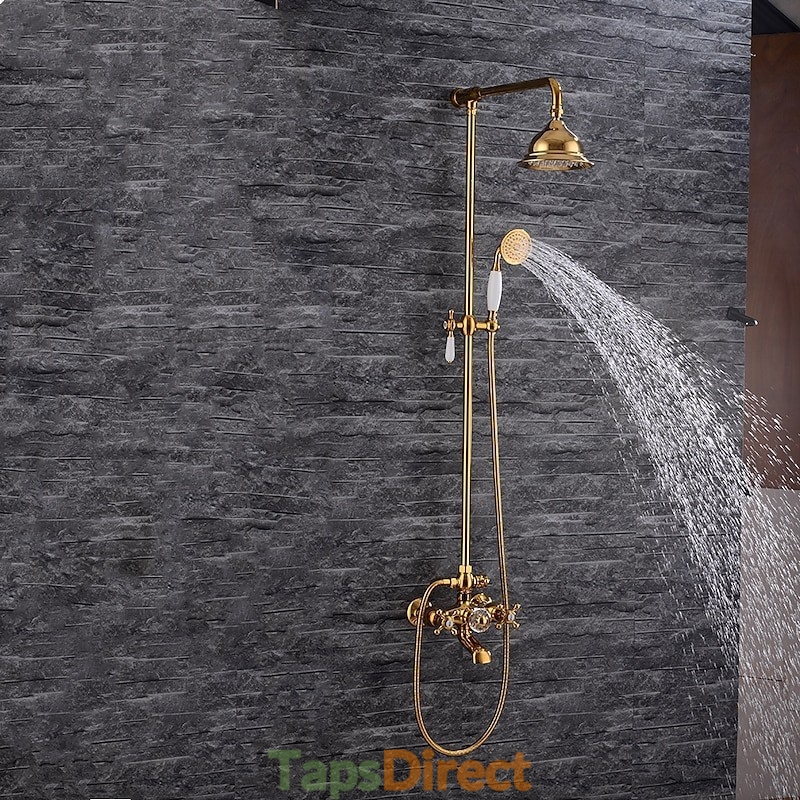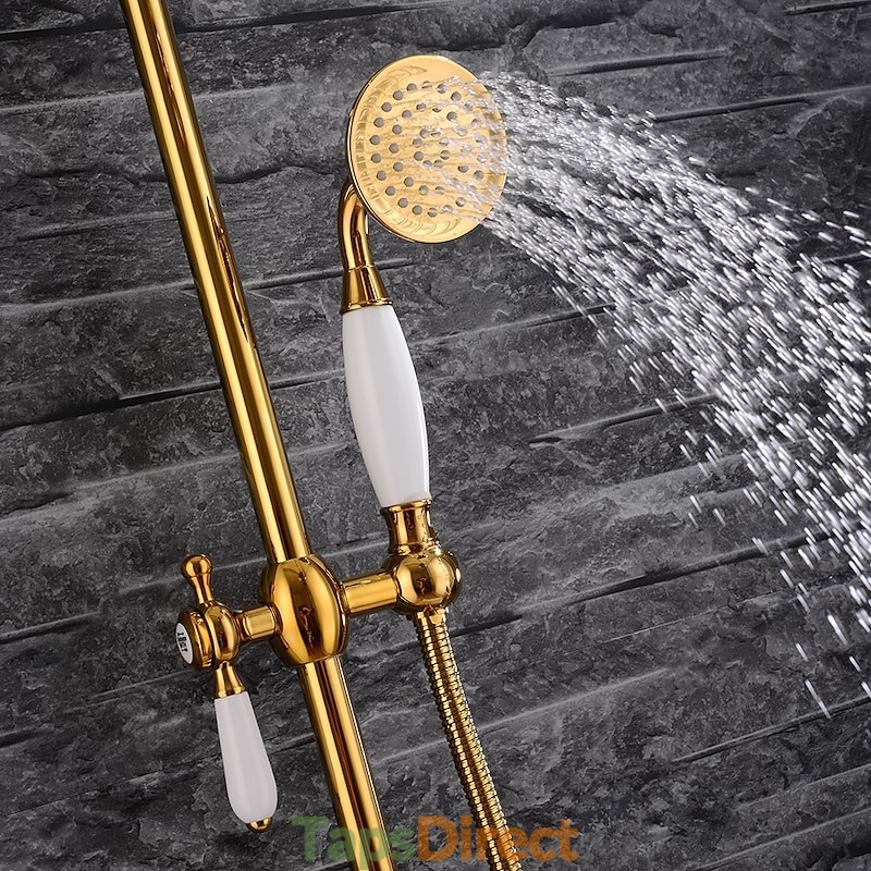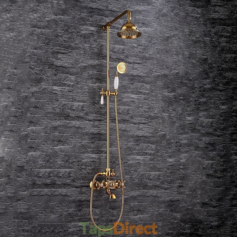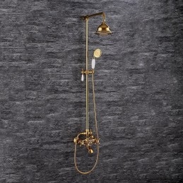 Style: Vintage Style, Antique, Features: Handshower Included, Faucet Type: Rainfall Shower Head System, Shower System, Installation Type: Mount Outside, Valve Type: Ceramic Valve, Finish: Electroplated, Special selected products: COD,