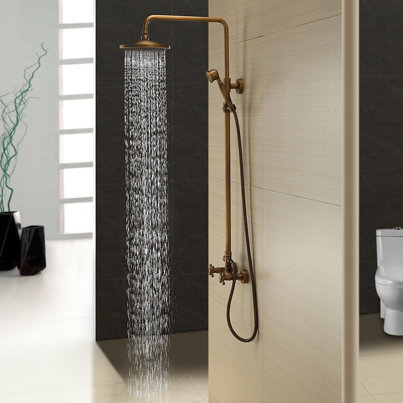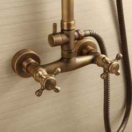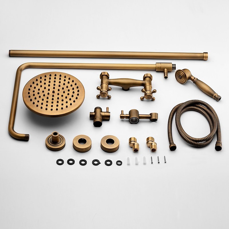 Style: Antique, Faucet Type: Shower System, Number Of Handles: Two Handles, Flow Rate (L/min): 1.8 GPM (6.81 L/min), Cold and Hot Switch: Yes, Valve Type: Ceramic Valve, Finish: Antique Brass, Installation Holes and Handles: Two Handles Three Holes, Special selected products: hot,