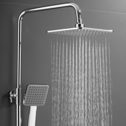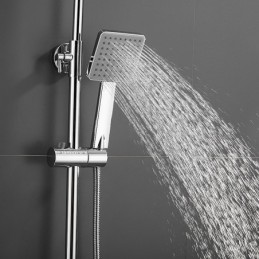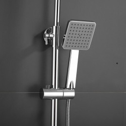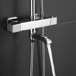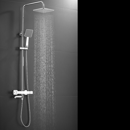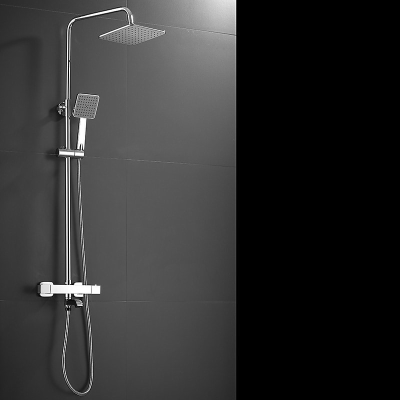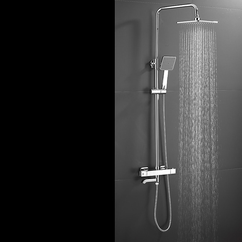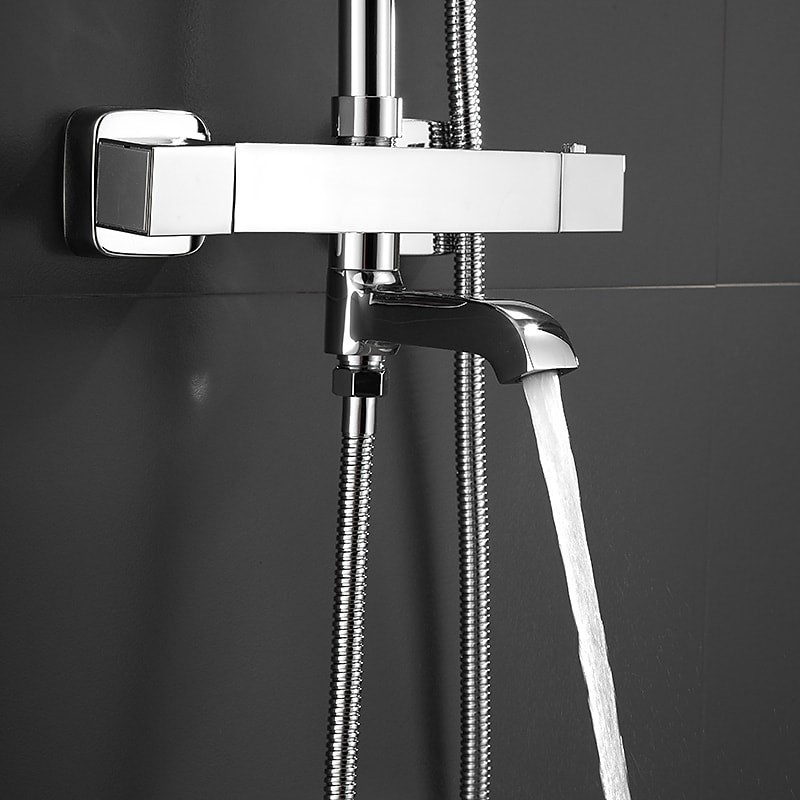 Style: Contemporary, Features: Multi Spray Shower, Rainfall Shower, pullout, Handshower Included, Waterfall, Faucet Type: Shower System, Thermostatic Mixer valve, Rainfall Shower Head System, Installation Type: Mount Outside, Number Of Handles: Two Handles, Cold and Hot Switch: Yes, Valve Type: Ceramic Valve, Finish: Electroplated,