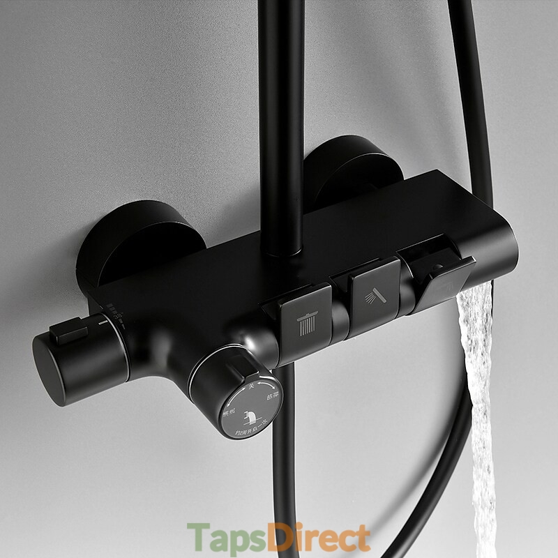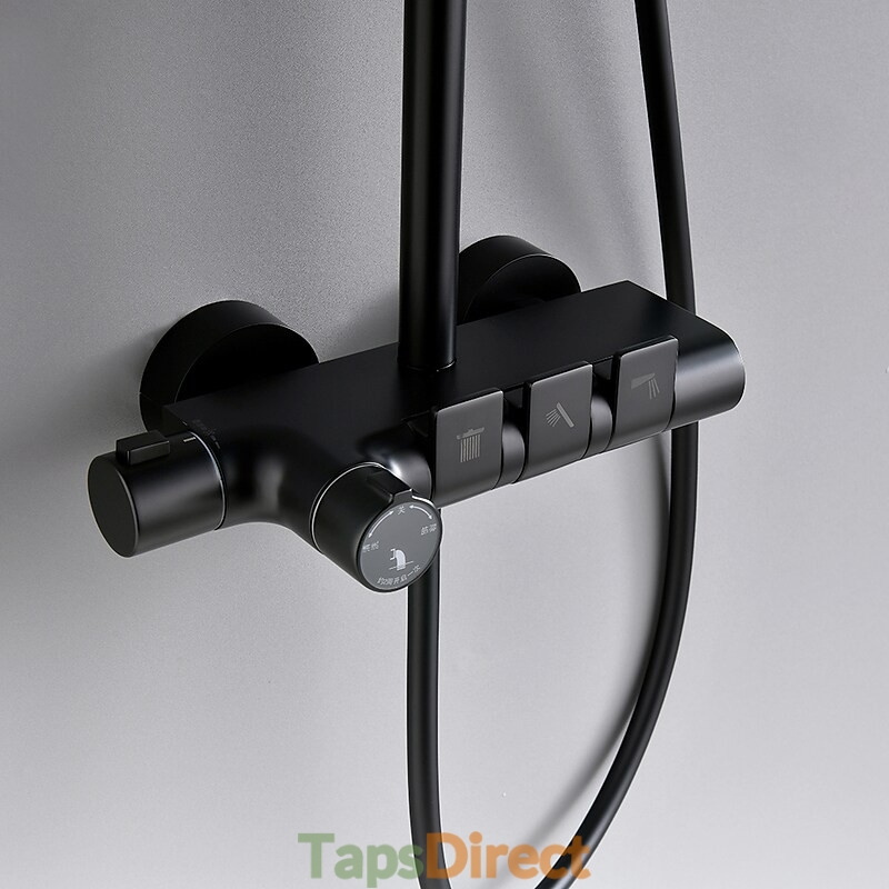 New Reference: 39407 Two Handles Shower Systerm Set Black Brass Tap Adjustable Electroplated Rainfall High Pressure Shower Mixer Tap Price €437.75 Add to basket More In stock
