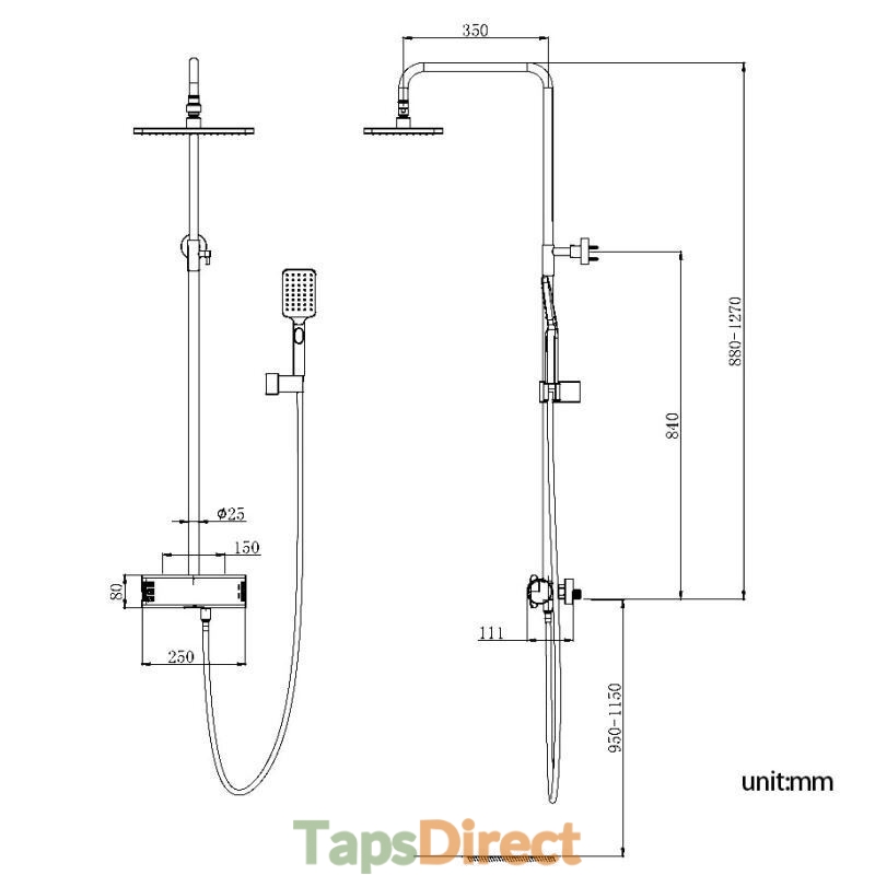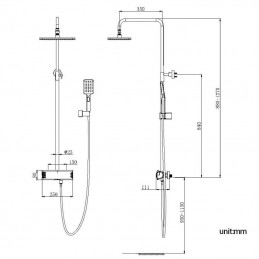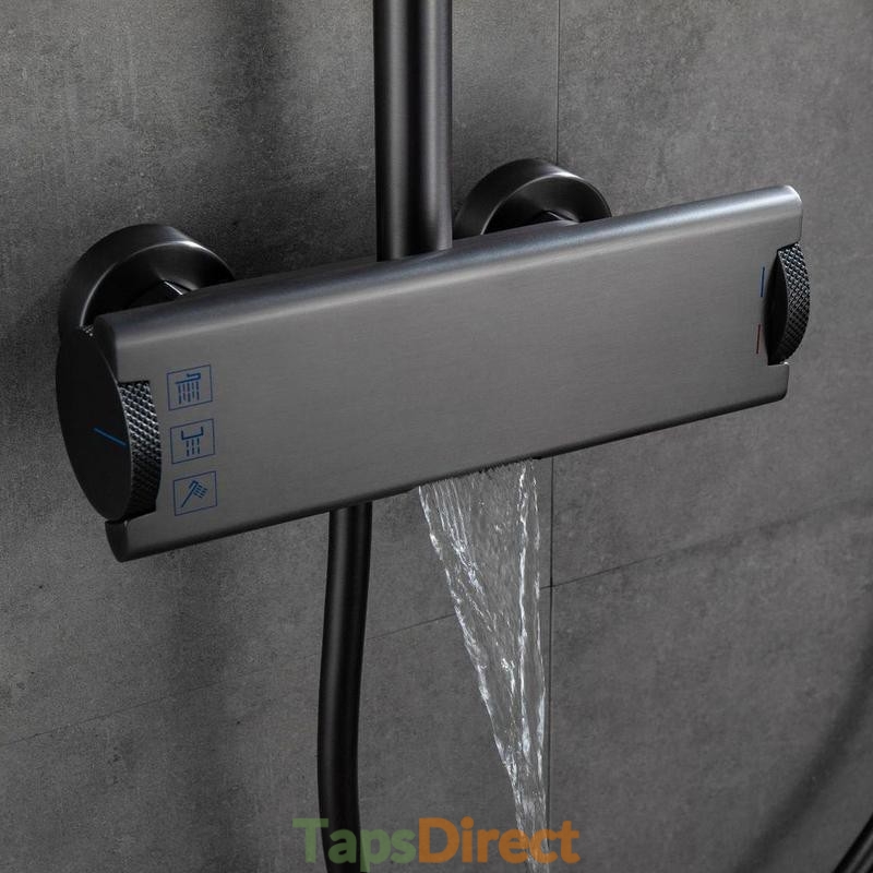 Modern Shower System with Waterfall Brass Tap and Rain Shower