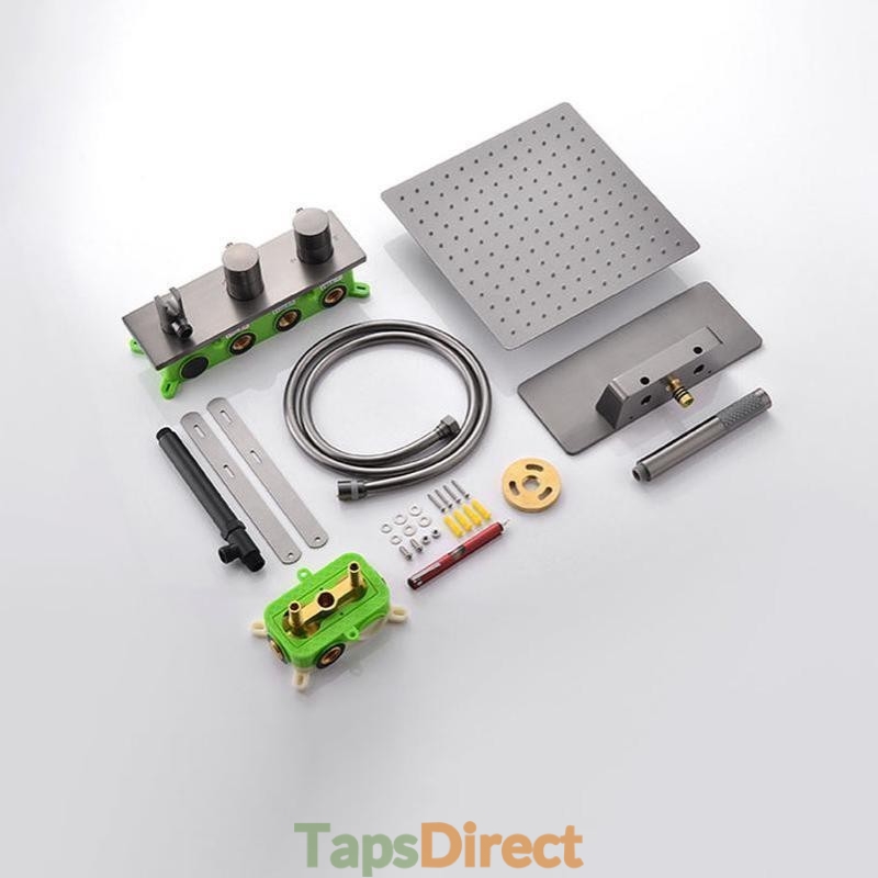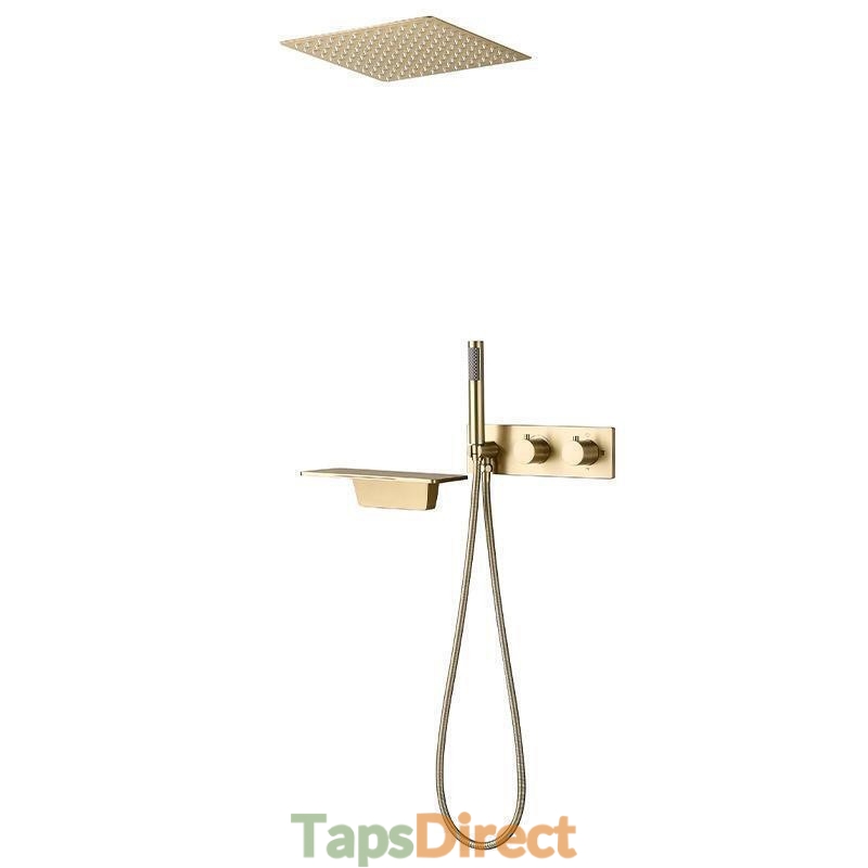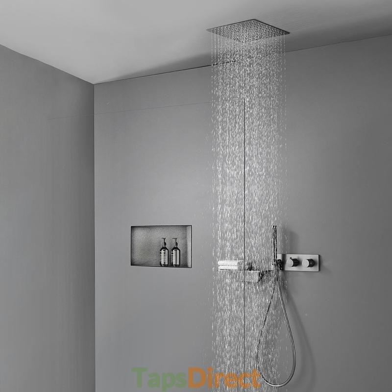 Thermostatic Shower System with 12" Ceiling Mount Rain Shower and Handheld Spray
