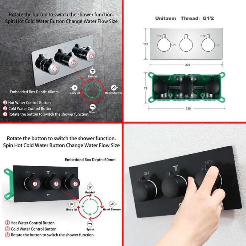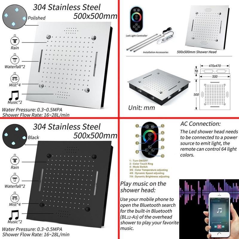 Infrared Remote Control 20 Inch LED Ceiling Mount Shower System with Bluetooth Music for Bathroom