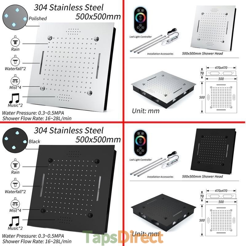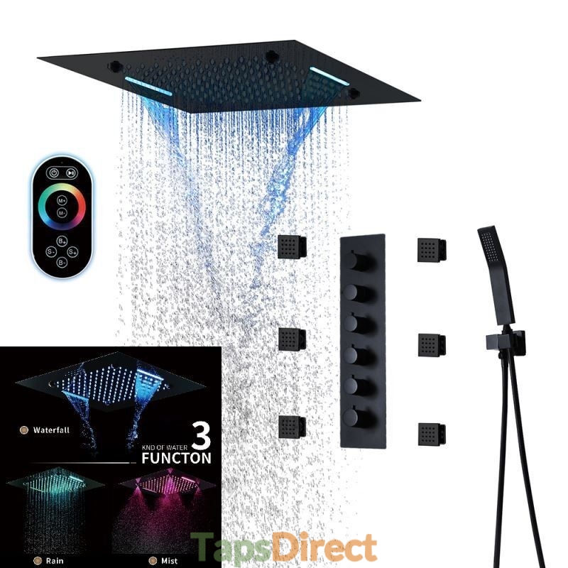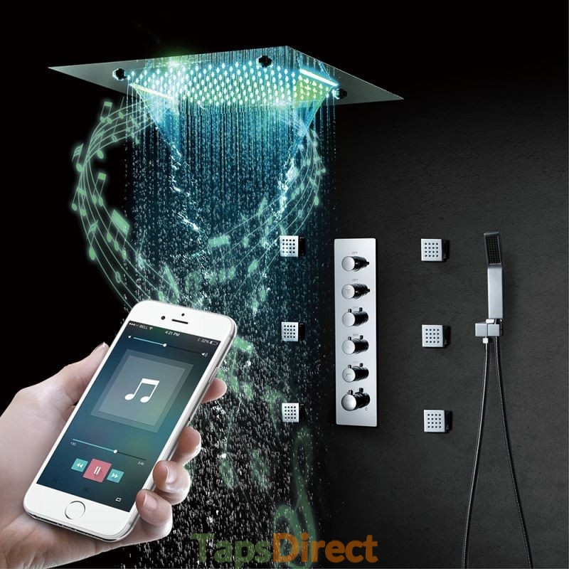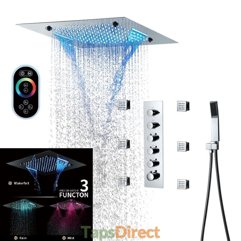 New Reference: 39321 Luxury Warm White LED Thermostatic Shower System with Ceiling Mount Head and 6 Body Sprays Price €3,902.39 Add to basket More In stock