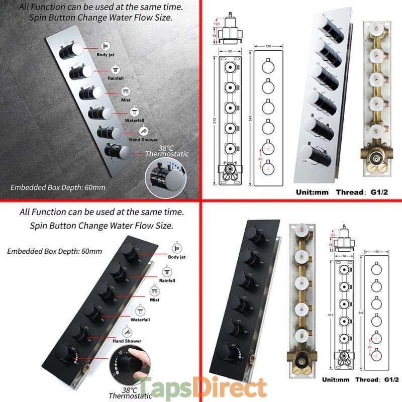 New Reference: 39319 Multi Function Chrome LED Thermostatic Shower Set with Concealed Shower Tap System Price €4,190.39 Add to basket More In stock