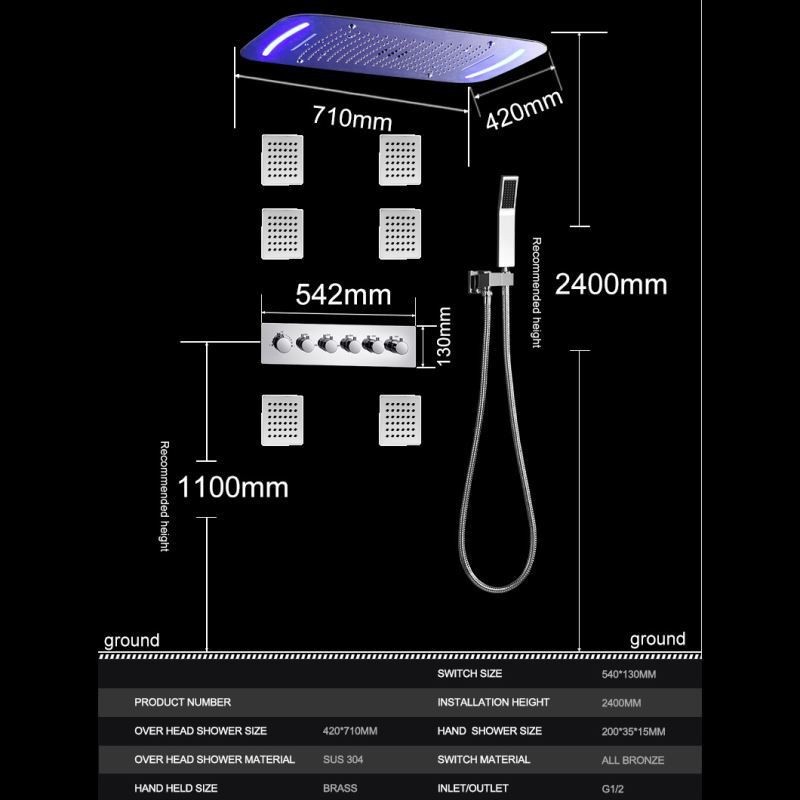 | Shower Head Measurement | 16.93*27.95'' (430mm*710mm) |